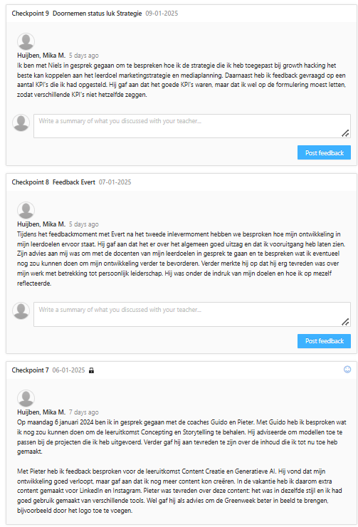 Het was wel lastig om persoonlijke feedback te vragen en te ontvangen, vooral omdat we in groepsverband werkten. In de verdiepingsfase ga ik mij hier meer op focussen, zodat ik mijn persoonlijke vooruitgang beter kan monitoren.